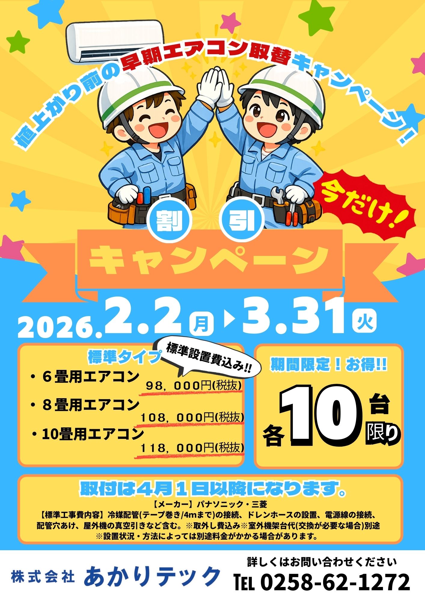 そこであかりテックではパナソニックと三菱のエアコン(標準タイプ)の